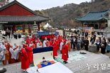 (누리일보) 의정부시는 2월 26일 (재)의정부문화재단이 주최하고 대한불교조계종 회룡사가 협력해 개최한 ‘2026 의정부 태조 어진 의례’를 통해 태조 어진 제작 완료를 공식적으로 알렸다. 이번 행사는 의정부와 깊은 인연을 지닌 태조 이성계의 역사적 의미를 재조명하고, 태조 어진 제작 완료를 계기로 도시 정체성을 역사문화 자산으로 확장하고자 마련됐다. 행사는 총 3부로 구성됐다. 1부는 의정부시청 태조홀에서 ‘의정부 역사문화포럼: 조선 태조‧태종 재회의 의미’를 주제로 열렸다. 태조 이성계 어진 제작에 참여한 권오창 화백의 제작 완료 보고와 함께 의정부 태조 어진 제작의 의미를 조명하는 발제와 토론이 진행됐다. 또한 의정부문화재단이 준비 중인 태조와 태종의 상봉을 주제로 한 창작 뮤지컬 제작 계획도 발표됐다. 2부 행사는 시청 본관 입구에서 태조 어진 제작 완료를 알리는 고유제로 진행됐다. 고유제는 중대한 일을 시작하거나 마친 뒤 그 사실을 신명이나 선현에게 알리는 전통 의례로, 이날 의례는 제작이 완료된 태조 어진을 기념하는 자리로 엄숙하게 거행됐다. 고유제 이후 어진은 회룡사로 이동해 3부 행