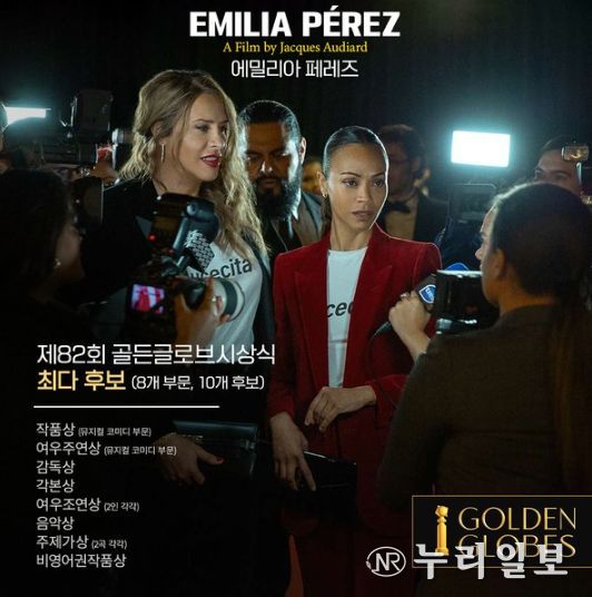 (누리일보) 지난 9일 저녁 발표된 제82회 골든글로브 시상식 후보 명단에서 자크 오디아르 감독의 뮤지컬 영화 '에밀리아 페레즈'가 무려 10개 후보에 오르며 최다 후보작의 주인공이 됐다.