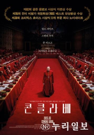 (누리일보) 골든 글로브, 크리틱스 초이스, 아카데미 등 2025년 유수 시상식 레이스에서 독보적인 존재감을 입증하고 있는 '콘클라베'가 3월 국내 개봉을 확정하며 티저 포스터를 공개했다.[수입: ㈜엔케이컨텐츠│배급: ㈜디스테이션│감독: 에드워드 버거│출연: 랄프 파인즈, 스탠리 투치, 존 리스고, 이사벨라 로셀리니]