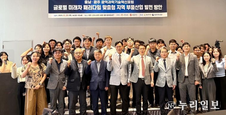 (누리일보) 충청남도와 광주광역시가 손잡고 미래 모빌리티 부품산업의 초광역 협력 모델을 모색하기 위한 ‘미래차 산업 대전환을 위한 초광역 전략 포럼’을 26일 천안 신라스테이호텔에서 개최했다.