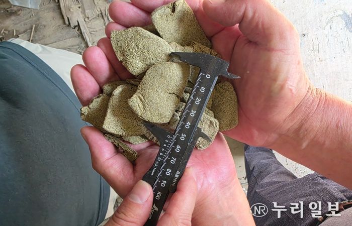 대체먹이는 해조류 부산물 등을 이용한 절편모양의 배합사료다.