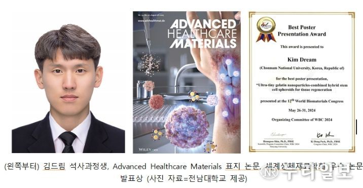 이번 연구는 김드림 석사과정생, 이신율 석사과정생, 김우찬 박사가 각각 주저자로 참여했으며, 출판된 논문은 ‘Advanced Healthcare Materials(피인용지수 9.6)’와 ‘Nano Letters(피인용지수 9.1)’ 최신 호에 표지 논문으로 선정됨과 동시에 세계생체재료학회 및 한국생체재료학회에서 우수 논문 발표상을 수상하여 연구의 우수성을 입증했다.
