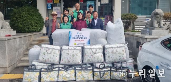 (누리일보) 포천시새마을회는 지난 7월 집중호우로 피해를 입은 수해 침수가구에 이불세트와 담요를 전달했다.
