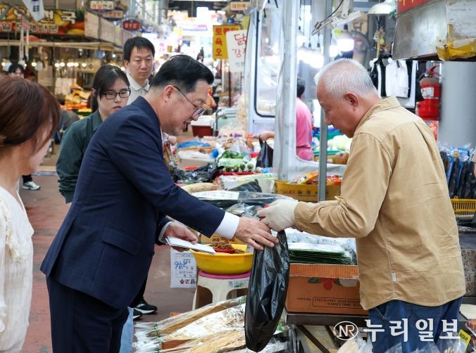 (누리일보) 이장우 대전시장은 추석 명절을 맞아 29일 중리시장, 신도시장 등 전통시장‧상점가를 방문하여 장을 보고 상인들을 격려했다. 구매한 물품은 행정복지센터를 통해 저소득 가정 등에 전달된다. 이장우 대전시장은 추석 명절을 앞둔 29일 중리시장과 신도시장을 찾아 직접 장을 보고 상인들을 격려했다. 이날 구매한 물품은 행정복지센터를 통해 저소득 가정 등에 전달될 예정이다.