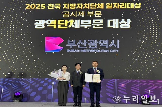 (누리일보) 부산시는 오늘(30일) 오후 2시 청주오스코에서 열린 '2025 전국 지방자치단체 일자리대상' 시상식에서 '공시제 부문' 광역단체 대상(국무총리상)과 '우수사업 부문' 우수상(장관상)을 각각 수상했다고 밝혔다.