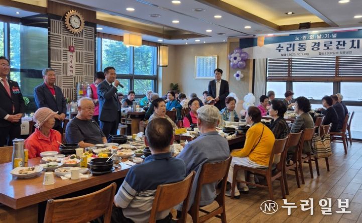 (누리일보) 군포시 수리동 주민자치회(회장 고진해)는 제29회 노인의 날을 맞아 지난 10월 2일 수리동 어르신들을 대상으로 경로잔치를 개최했다. 이번 행사는 하은호 군포시장, 이학영 국회부의장 등 여러 내빈과 수리동 직능단체장들이 어르신 100여 명과 뜻깊은 자리를 함께했다.