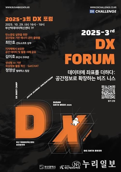 (누리일보) 부산시는 오는 10월 29일 오후 4시 부산빅데이터혁신센터(해운대구 센텀동로 45)에서 '2025-3회 디지털전환(DX) 포럼'을 개최한다고 밝혔다.