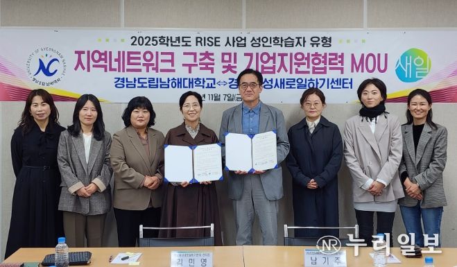 (누리일보) 경남도립남해대학은 7일 오전 11시 경남여성새로일하기센터에서 양 기관 간 평생교육 공동과제 해결 및 여성 역량 강화를 위한 업무협약(MOU)을 체결했다고 밝혔다.