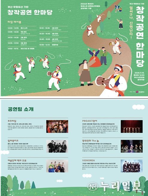 (누리일보) 부산시는 오는 15일 오후 2시 부산시민공원 흔적극장에서 부산 무형유산의 새로운 활용 방향을 모색하는'2025 제2회 무형유산 기반 창작공연 한마당'을 개최한다고 밝혔다