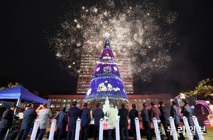 (누리일보) 대전시는 25일 시청 남문광장에서 연말연시를 밝히는 성탄트리 점등식을 개최했다.