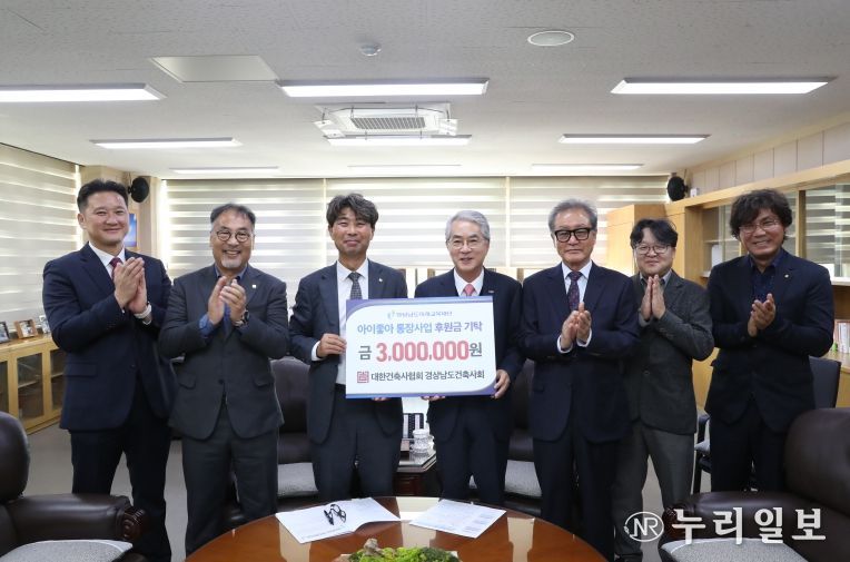 (누리일보) 경상남도건축사회(회장 정일현)는 경남교육감 집무실을 찾아 경상남도미래교육재단(이사장 박종훈 교육감)에 ‘아이좋아 통장사업’ 후원금 300만 원을 기탁하며 아이들의 꿈과 성장을 응원했다.