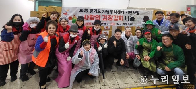 (누리일보) 하남시 신장2동 통장단은 경기도 자원봉사센터에서 공모한 “2025년 도민이 전하는 자원봉사 2차 김장지원 공모사업”에 선정되어 27일 자원봉사자들과 함께 김장김치를 정성스레 담궈 취약계층 200가구에 전달했다.