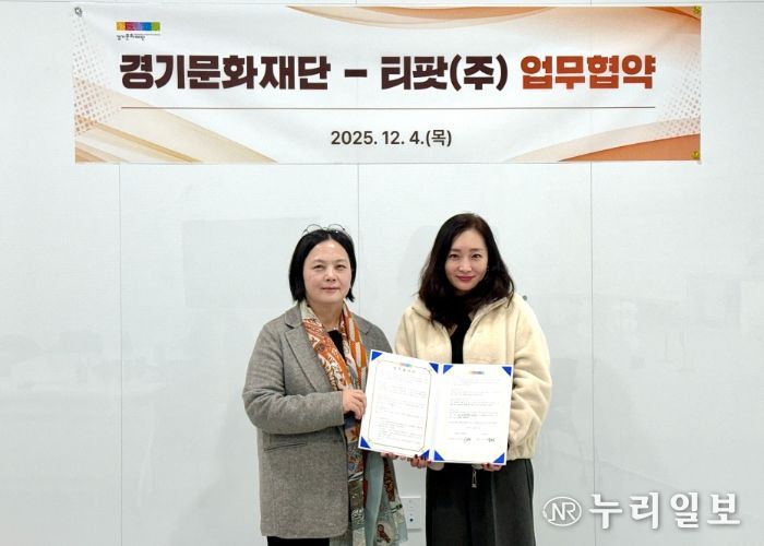 (누리일보) 경기문화재단은 12월 4일 경기도의 예술진흥과 지역문화 진흥을 도모하는 새로운 문화예술 정책의 제안·공유·생산을 목표로 사회적기업 티팟주식회사와 업무협약(MOU)을 체결했다.
