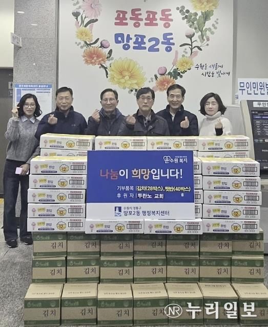 (누리일보) 수원시 영통구 망포2동에 위치한 두란노교회는 지난 16일, 지역 내 취약계층을 돕기 위해 김치 28박스와 햇반 40박스를 망포2동 행정복지센터에 기탁했다.