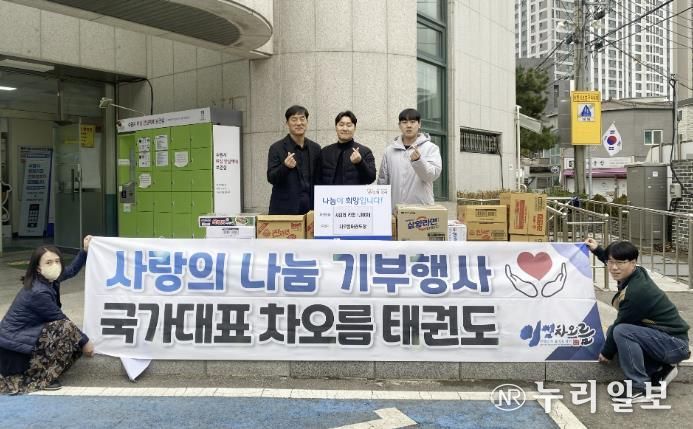 (누리일보) 수원시 장안구 정자1동 소재 국가대표차오름태권도장은 지난 19일 추운 겨울 연말을 맞아 주변 어려운 이웃과 따뜻한 정을 나누고자 라면 1,000개를 모아 정자1동 행정복지센터에 기부했다.