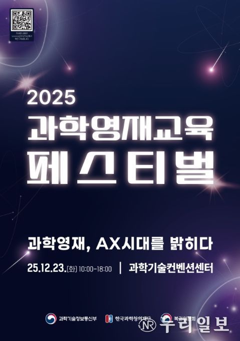 (누리일보) 과학기술정보통신부와 한국과학창의재단은 12월 23일, 과학기술컨벤션센터(서울 강남구)에서‘과학영재, 인공지능 전환(AX) 시대를 밝히다’를 주제로 『2025 과학영재교육 축제(페스티벌)』를 개최했다.