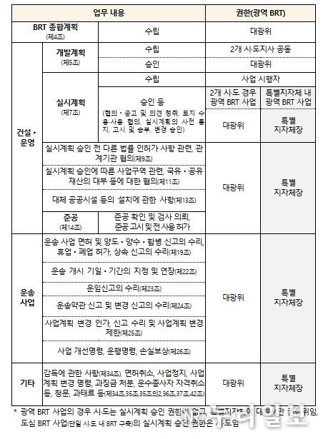 이번에 위임되는 광역 BRT 사무의 주요 내용은 다음과 같다.