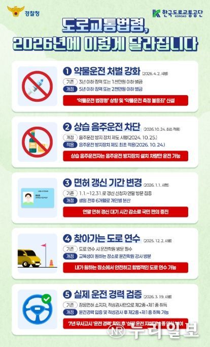 (누리일보) 경찰청은 도로 위 교통안전은 높이고, 국민이 겪는 불편은 줄이는 내용의 도로교통법령을 내년부터 시행한다.