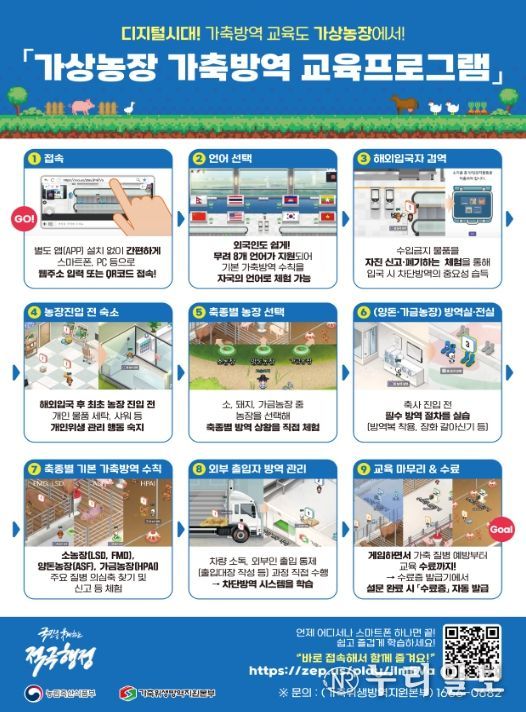 (누리일보) 농림축산식품부는 가축위생방역지원본부와 함께 축산농장에서 근무하는 외국인 근로자와 신규 진입 축산농장주 등을 대상으로 2026년 1월부터 '가상농장 가축방역 교육프로그램'을 정식으로 도입·운영 한다.