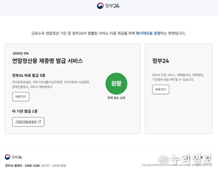 (누리일보) ‘정부24’에서 2025년 귀속 연말정산에 필요한 주민등록등본 등 5종의 증명서를 평소보다 더 간편하게 발급받을 수 있다.