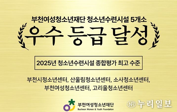 (누리일보) 부천여성청소년재단이 청소년수련시설 5개소(부천시청소년센터, 산울림청소년센터, 소사청소년센터, 부천여성청소년센터, 고리울청소년센터)가 성평등가족부 주관 2025년 청소년수련시설 종합평가에서 5개 시설 모두 최고 수준인 ‘우수’ 등급을 달성하는 쾌거를 이루었다.