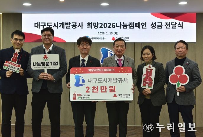 (누리일보) 대구도시개발공사는 1월 13일 사회복지공동모금회가 주관하는 ‘희망2026나눔캠페인’에 성금 2,000만 원을 기탁했다고 밝혔다.