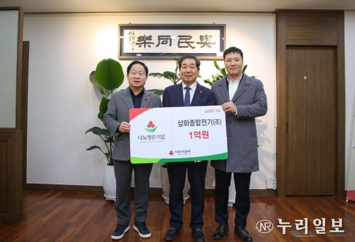 (누리일보) 남양주시는 14일 삼화종합전기가 사회복지공동모금회의 고액 기부 프로그램인 ‘나눔명문기업’ 5호로 가입하고, 지역 내 취약계층 지원을 위해 1억 원 기부를 약정했다고 밝혔다.