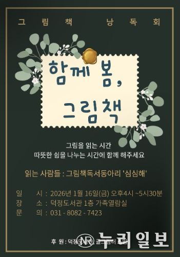 (누리일보) 양주시 덕정도서관은 오는 1월 16일 16시부터 17시 30분까지, 도서관 1층 가족열람실에서 그림책 낭독회 '함께 봄, 그림책'을 운영한다.