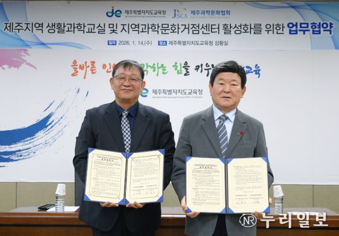 (누리일보) 제주특별자치도교육청은 14일 도교육청 상황실에서 (사)제주과학문화협회와 제주지역 과학문화 확산 및 미래 핵심역량 강화를 위한 업무협약을 체결했다.