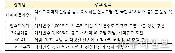 `25년 8월부터 「독자 AI 파운데이션 모델 프로젝트」 정예팀에 선발된 5개 팀이 치열한 경쟁을 통해 기술 혁신을 거듭한 결과, 정예팀이 개발한 AI 파운데이션 모델(`25년말 공개) 5개 모두 미국 비영리 AI연구기관 ‘Epoch AI’의 ‘주목할만한 AI모델(Notable AI Models)’로 등재되는 성과를 거두었다.