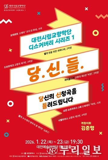 (누리일보) 대전시립교향악단은 22일과 23일 오후 7시 30분, 대전예술의전당 앙상블홀에서 디스커버리 시리즈1 <당.신.들. - 당신의 신청곡을 들려드립니다>를 무대에 올린다.