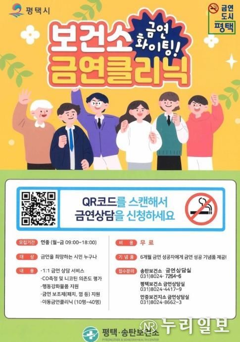 (누리일보) 평택시는 금연을 희망하는 시민들이 금연클리닉 정보무늬(QR코드)를 통해 편리하게 금연 상담 서비스를 이용할 수 있도록 금연클리닉을 운영하고 있다.