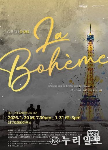 (누리일보) 대구문화예술진흥원 대구오페라하우스는 2026 첫 공연으로 광주시립오페라단 제작의 푸치니 오페라 '라 보엠'을 1월 30일 오후 7시 30분, 31일 오후 3시에 대구오페라하우스에서 선보인다.
