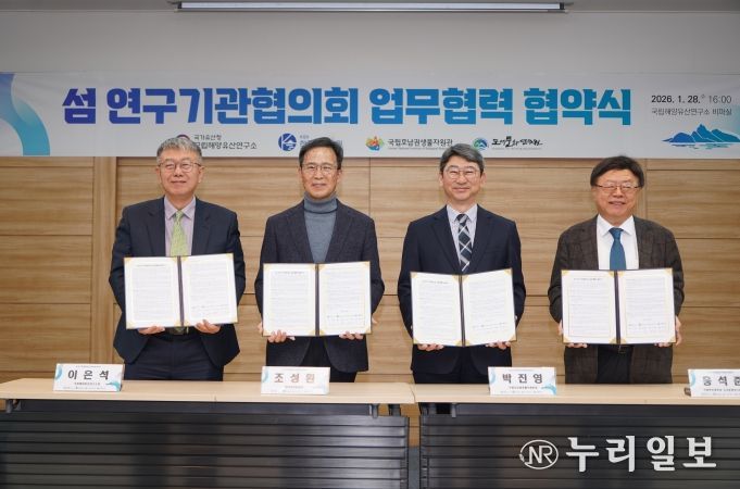 (누리일보) 기후에너지환경부 산하 국립호남권생물자원관(관장 박진영)은 국립해양유산연구소, 한국섬진흥원, 국립목포대학교 도서문화연구원과 함께 2026년 1월 28일 국립해양유산연구소(전남 목포시 소재)에서 '섬 연구기관 협의회' 출범을 위한 업무협약을 체결했다.
