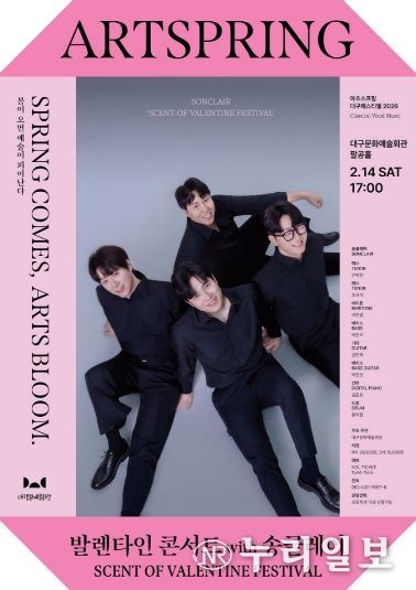 (누리일보) 대구문화예술진흥원 대구문화예술회관은 오는 2월 14일 오후 5시, 팔공홀에서 지역 성악가로 구성된 남성 4인조 크로스오버 보컬 그룹 송클레어(SONCLAIR)와 함께하는 ‘발렌타인 콘서트 with 송클레어 – Scent of Valentine Festival’을 개최한다.