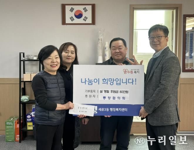 (누리일보) 세류3동 행정복지센터는 지난 2월 2일, 세류3동 통장협의회가 지역 내 어려운 이웃을 위해 이웃 돕기 성금 80만 원을 기부하고, 통장협의회 회장이 개인 성금 20만 원을 추가로 기탁해 총 100만 원의 성금이 전달됐다고 밝혔다.