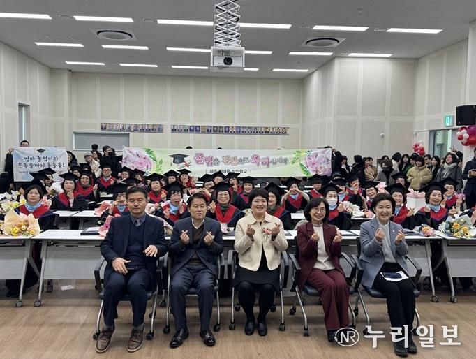 (누리일보) 파주시는 지난 5일 금촌1동 행정복지센터 4층 대회의실에서 녪년 파주한마음교육관 중학 학력인정 성인문해교육 졸업식’을 개최했다.