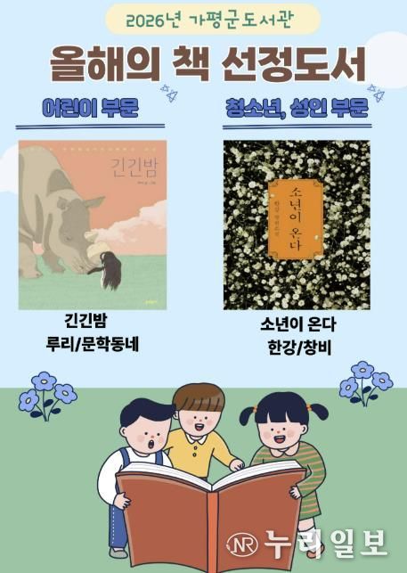 (누리일보) 가평군도서관이 군민의 독서 문화 확산을 위해 ‘2026년 올해의 책’으로 루리 작가의 『긴긴밤』과 한강 작가의 『소년이 온다』를 선정했다.