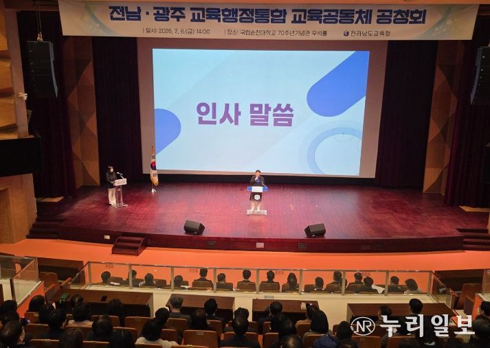 (누리일보) 김정희 전남도의회 교육위원장은 2월 6일 순천대학교 우석홀에서 열린 '전남·광주 교육행정통합 교육공동체 공청회'에 참석해, 전남·광주 교육행정통합 논의의 핵심 가치로 ‘교육 중심의 통합’을 강조했다.