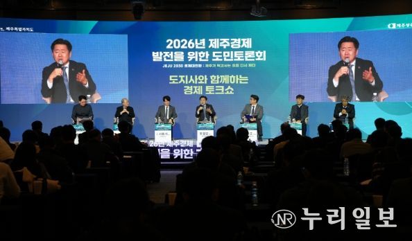 제주도와 제주상공회의소는 9일 오후 2시 한라컨벤션센터에서 ‘2026년 제주경제 발전을 위한 도민토론회’를 열었다.