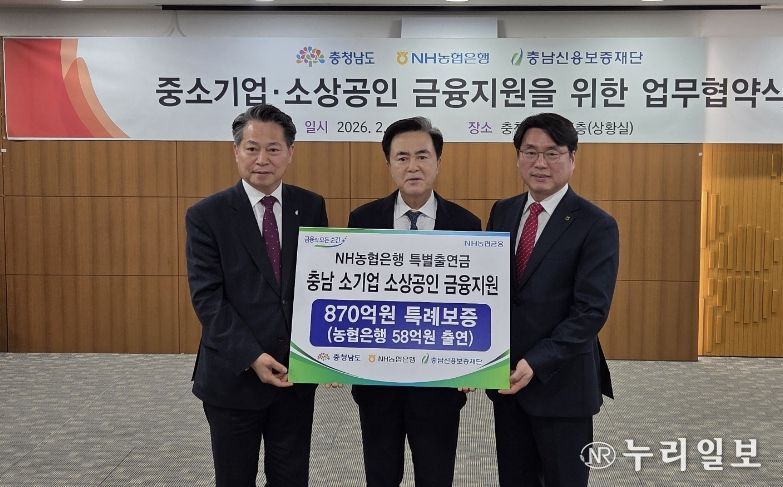 (누리일보) 충남신용보증재단은 충남경제 활력 제고와 지역 중소기업·소상공인의 경영안정 지원을 위해 11일 충남도청에서 충청남도, NH농협은행과 '중소기업·소상공인 금융지원을 위한 특별출연 업무협약'을 체결했다고 밝혔다.