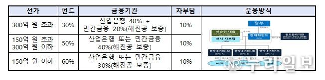 특히, 해양수산부는 2024년부터 지원 대상을 연안화물선까지 확대했고, 올해부터는 원자재 가격 상승 등 선박 건조 비용 증가를 감안해 지원비율별 선가 구간을 2.5배 상향*했다. 펀드 지원에 선정된 선사는 지원 선박을 운항하면서 15년간(3년 거치, 12년 분할상환) 지원 자금을 상환한 후, 선박 소유권을 최종 취득하게 된다.