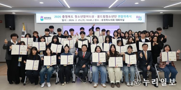 (누리일보) 2026년 충청북도 청소년참여위원회 및 꿈드림 청소년단 위촉식이 2월 25일 충청북도의회 대회의실에서 개최됐다.
