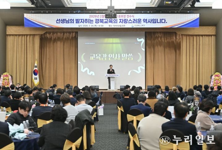 (누리일보) 경북교육청은 26일 경주시에 있는 더케이호텔경주 거문고홀에서 경북교육 발전에 헌신하고 영예롭게 퇴임하는 교원들을 위한 ‘2026년 2월 말 퇴직 교원 훈포장 전수식’을 개최했다고 밝혔다.
