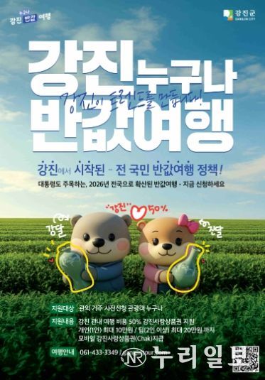 특히 이번 사업은 강진군이 선도적으로 추진해 전국적 주목을 받았던 ‘반값여행’ 정책을 정부가 제도화한 것으로, 전남이 지역관광 활성화 정책의 선도 모델을 제시했다는 점에서 의미가 크다.