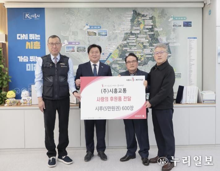 (누리일보) 시흥시는 지난 2월 26일 ㈜시흥교통에서 저소득층 지원을 위해 시루 5만 원권 600여 장을 시흥시1%복지재단에 전달했다고 밝혔다.