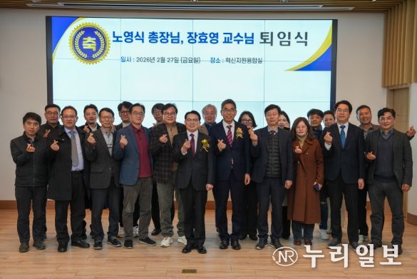 이날 퇴임식은 주요 약력 소개, 기념영상 상영, 감사패 및 꽃다발 증정, 퇴임사, 기념 촬영 순으로 진행됐다. 참석자들은 오랜 시간 대학과 지역을 위해 헌신해 온 두 사람의 명예로운 퇴임에 아낌없는 박수를 보냈다.
