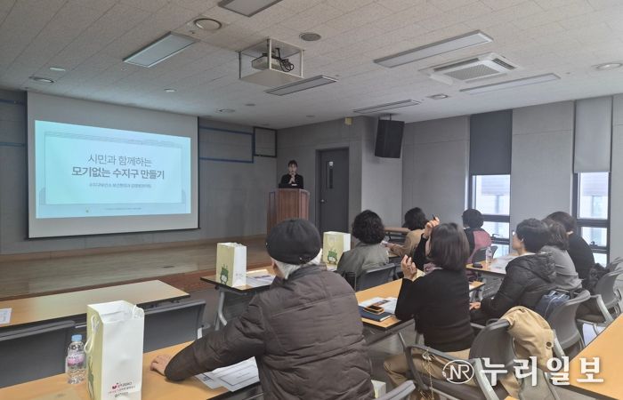수지구는 ‘시민과 함께하는 모기 없는 수지구 만들기’ 사업을 추진한다. 개인하수처리시설(정화조)을 사용하는 가구와 300세대 미만 공동주택을 중심으로 유충 관리 활동을 전개한다. 사업 효과를 높이기 위해 2월 27일 통장을 대상으로 유충 구제 방법과 유충구제제 사용요령 등에 대한 교육을 실시했다. 교육을 받은 통장들은 각 가구에 유충구제제를 배부하고, 주민들이 정기 투여할 수 있도록 안내·독려하는 역할을 맡는다.