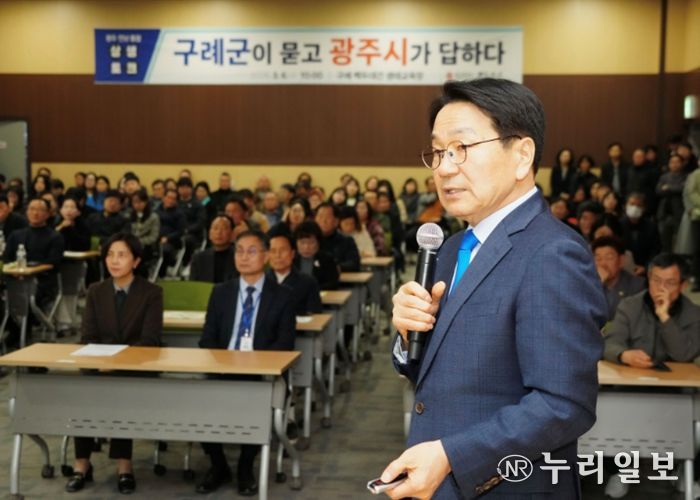 (누리일보) 광주광역시는 6일 구례군 백두대간생태교육장 세미나실에서 ‘광주전남 통합 구례군 상생토크’를 열고, 구례 발전 전략과 통합 이후 변화에 대해 구례군민들과 소통했다.