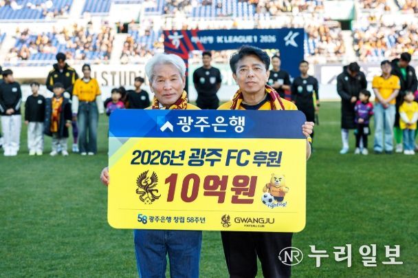 (누리일보) 광주은행은 지난 7일 광주월드컵경기장에서 열린 광주FC 홈 개막전에서 광주FC의 2026 시즌 선전을 기원하며 후원금 10억 원을 전달했다고 밝혔다.